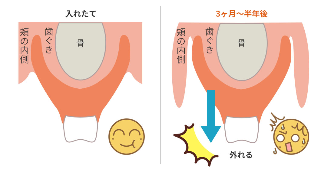 患者さん達は「3か月したら急激に入れ歯がゆるくなった」とお話ししていましたが、どうですか?普通ですか?